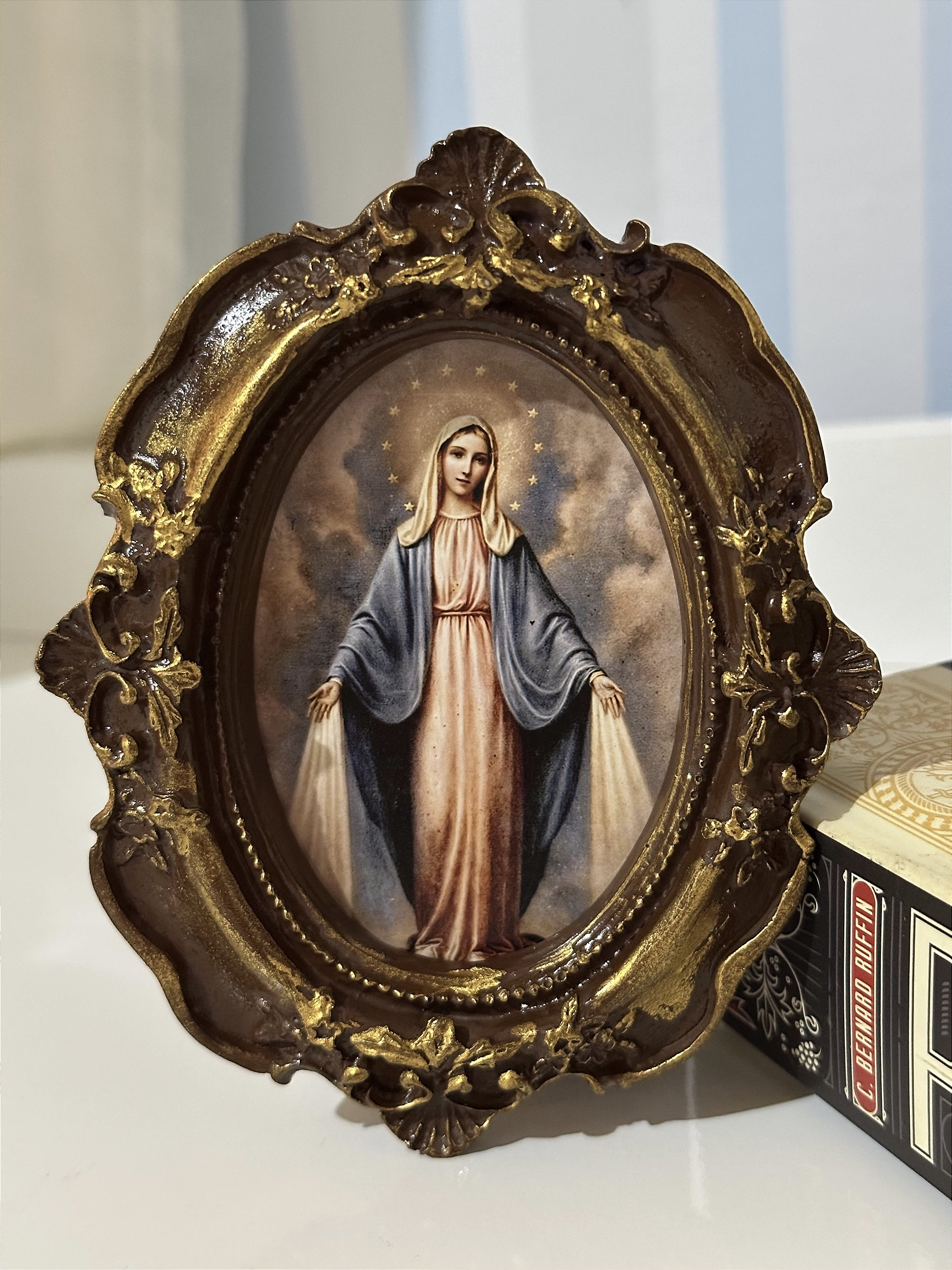 Apresentamos nosso quadrinho MÃE DAS GRAÇAS - peça produzida em moldura vintage para trazer leveza, beleza e sacralidade ao seu coração ♥️