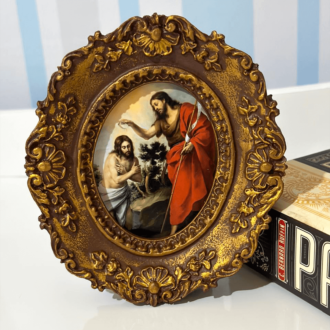 Celebre um dos momentos mais sagrados do Evangelho com o Quadro Batismo do Senhor, uma peça que representa a unção divina de Jesus nas águas do Jordão. Repleto de simbolismo e espiritualidade, este quadro é ideal para quem busca inspiração nos sacramentos e na missão redentora de Cristo.