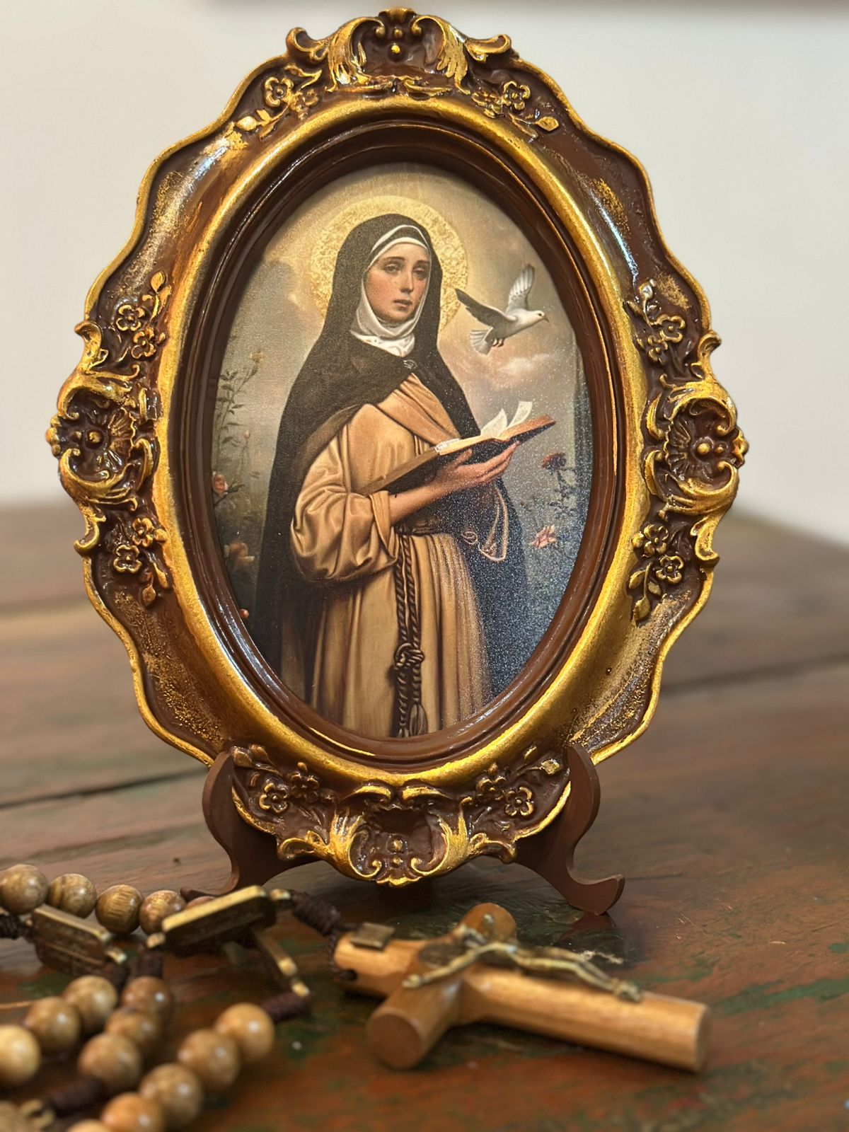 Leve para seu lar a sabedoria e a intercessão de Santa Teresa d’Ávila com este quadro que convida à oração profunda e à confiança em Deus.