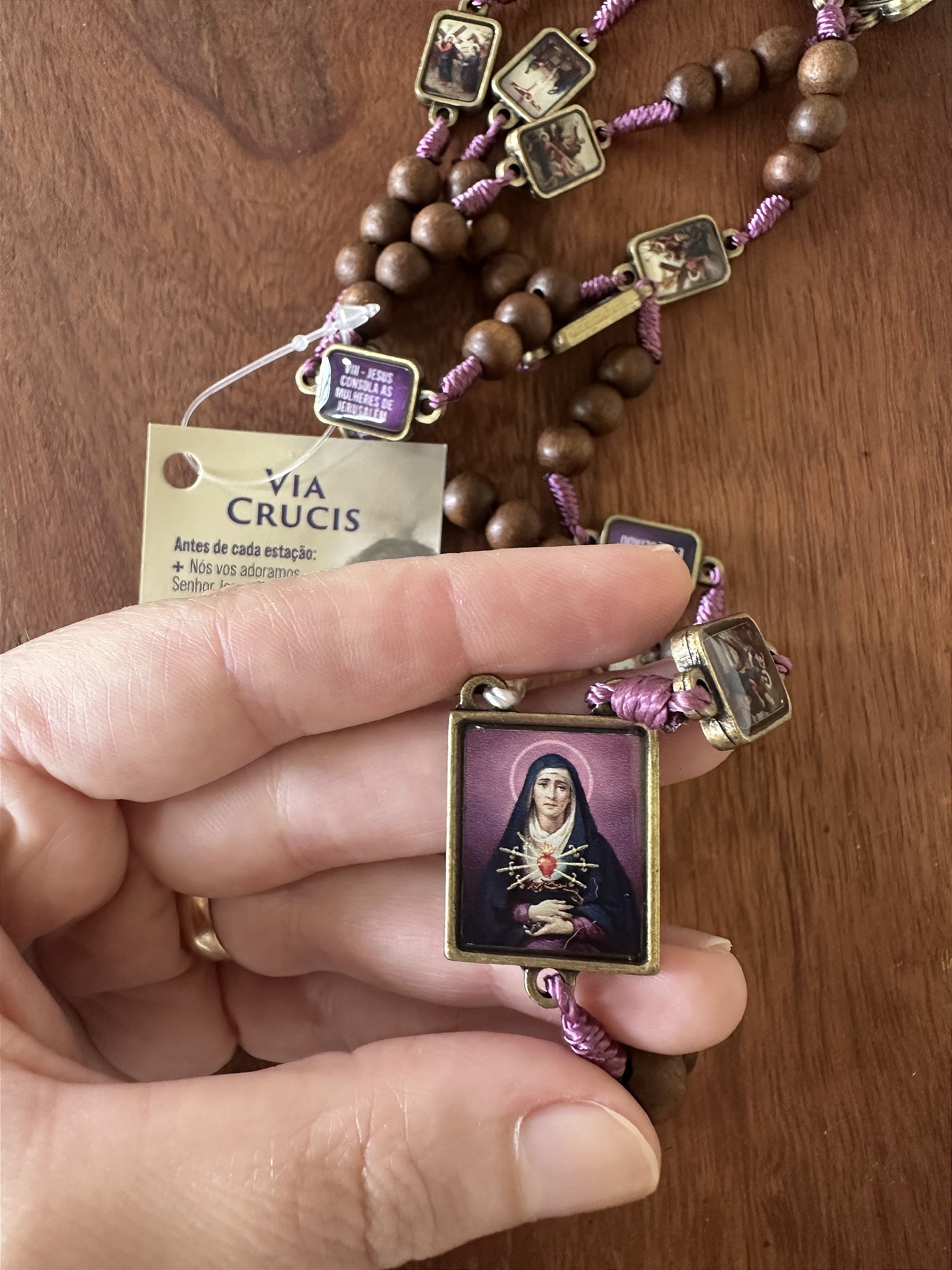 O Terço da Via-Sacra é uma forma profunda e contemplativa de oração que convida os fiéis a percorrerem espiritualmente o caminho de Jesus até o Calvário. Inspirado nas estações da Via-Sacra, esse terço nos conduz à meditação dos momentos mais marcantes da Paixão de Cristo, ajudando-nos a refletir sobre o amor, o sacrifício e a redenção.